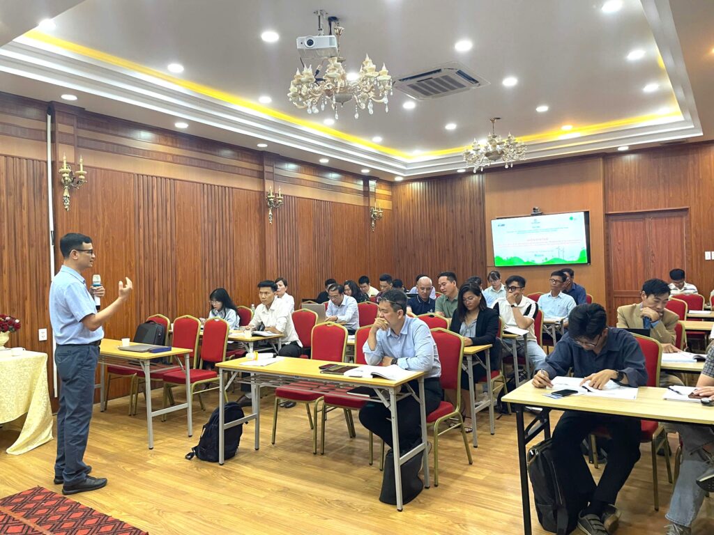Ông Mai Văn Huyên, Giám đốc Trung tâm Phát triển Xanh (Đơn vị Tư vấn thực hiện khóa đào tạo), giới thiệu về chương trình tập huấn.