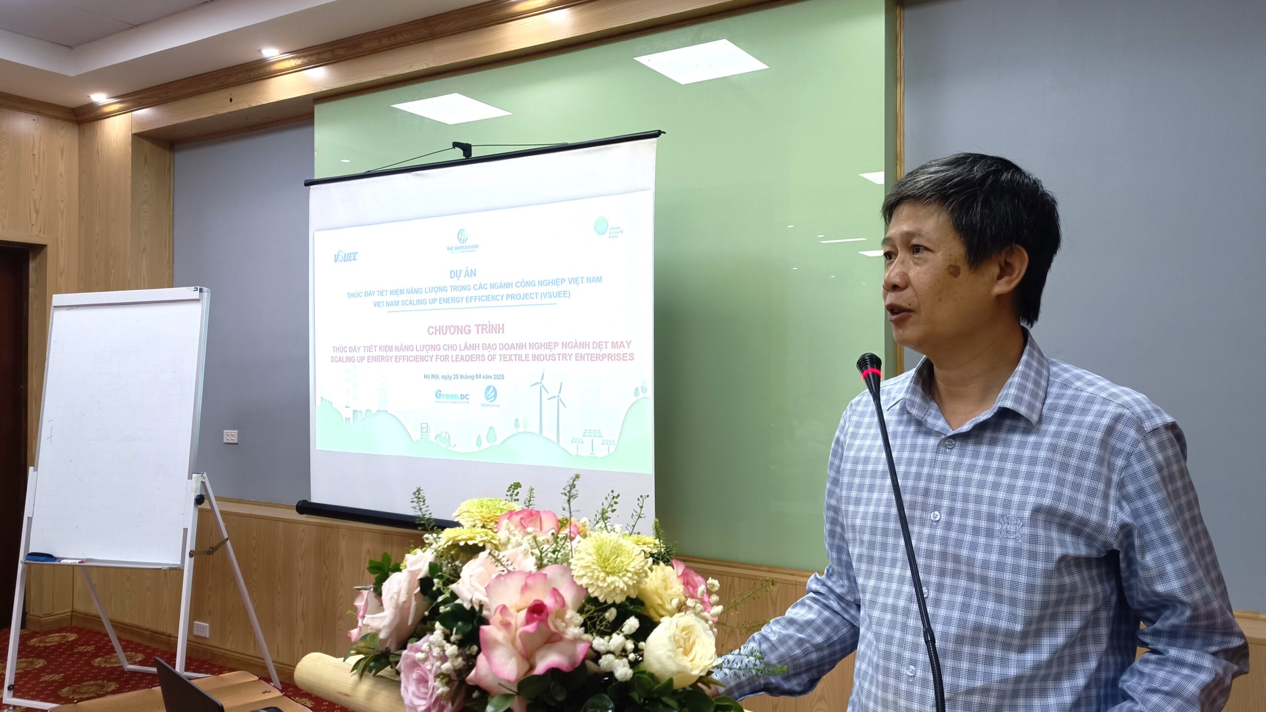 Sáng ngày 25 tháng 4 năm 2025, trong khuôn khổ Dự án “Thúc đẩy tiết kiệm năng lượng trong các ngành công nghiệp Việt Nam” (VSUEE), chương trình đào tạo dành cho lãnh đạo các doanh nghiệp ngành Dệt may đã diễn ra tại Hà Nội.